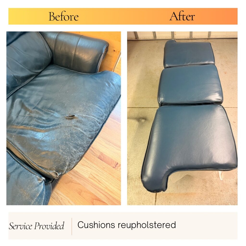 See real examples of sofa cushion repairs, panel replacements, and upholstery work. These projects show how worn or damaged furniture can be restored with professional reupholstery.