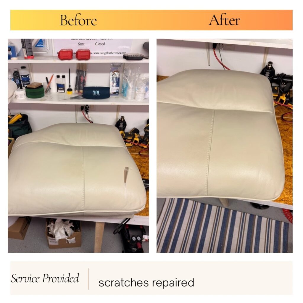 Professional Leather Furniture Repair in Raleigh — we specialize in restoring damaged leather sofas, chairs, sectionals, and ottomans. Scratches, color loss, cracks, and worn cushions can often be repaired without replacing the entire piece of furniture.